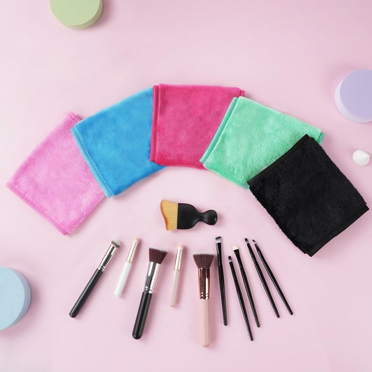 URAQT 5 Pack Face Cloths Make Up Remover Microfibre Face Wipes for Reusable Makeup Remover Cloth Washable Ultra Soft Facial Cleansing Wipe Cloths (Blue/Rose/Red Black/Pink/Green)
