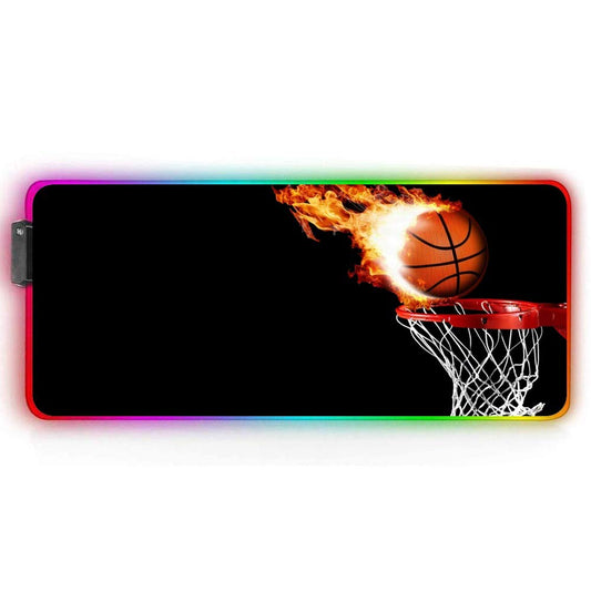ZYCCW Large RGB Gaming XXL Mouse Pad with Stitched Edge 31.5×15.7×0.15 Fire Basketball Mouse Mat Customized Extended Glowing Led Gaming Mouse Pad Anti-Slip Rubber Base Ergonomic Mouse Pad for Computer