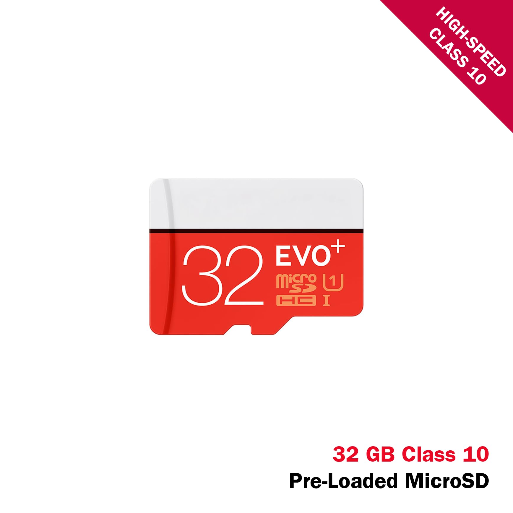 • Includes Pre-Loaded 32GB EVO+ Micro SD Card (Class 10), USB MicroSD Card Reader